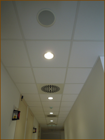 N 28 Diffusori da incasso con corpo metallico per incasso a pannelli da soffitto conforme alle normative EN 60849 , dispongano di contatti ceramici e protetti da un corpo metallico , equipaggiati di fusibili termici per istallazioni di sistemi ad evacuazione e messaggi vocali.