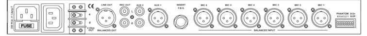 N° 6 Ingressi microfonici Bilanciati attacco XLRAlimentazione Phantom inseribile.